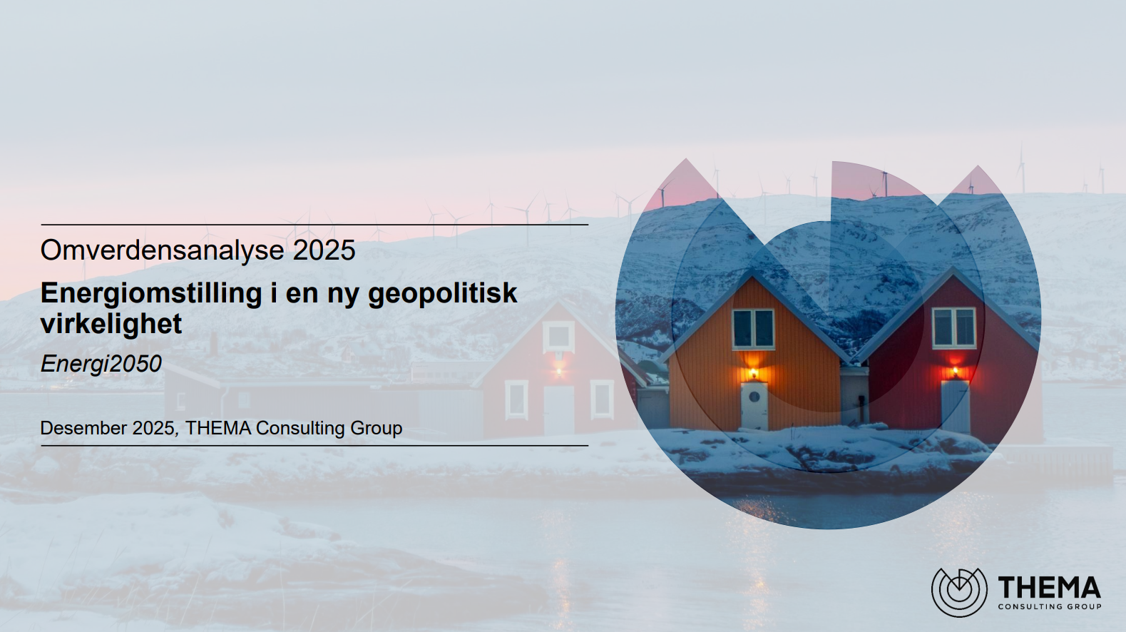 Energisystemet er inne i en av sine mest krevende omstillingsfaser noensinne. Geopolitisk uro, økende stormaktsrivalisering og sårbare verdikjeder gjør at energi har blitt et strategisk maktmiddel. Samtidig forsterkes presset av rask digitalisering, ekstremvær og en klima- og naturkrise som ikke venter. Energi2050s omverdensanalyse identifiserer sentrale faktorer som vil påvirke utviklingen av fremtidens energisystemer og energimarkeder.
